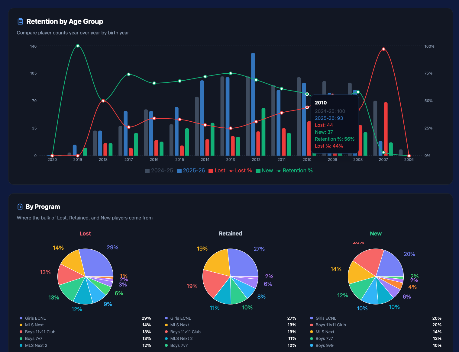 A Leadership Visibility ToolSee your club’s true retention health — season to season and in season at a glance.